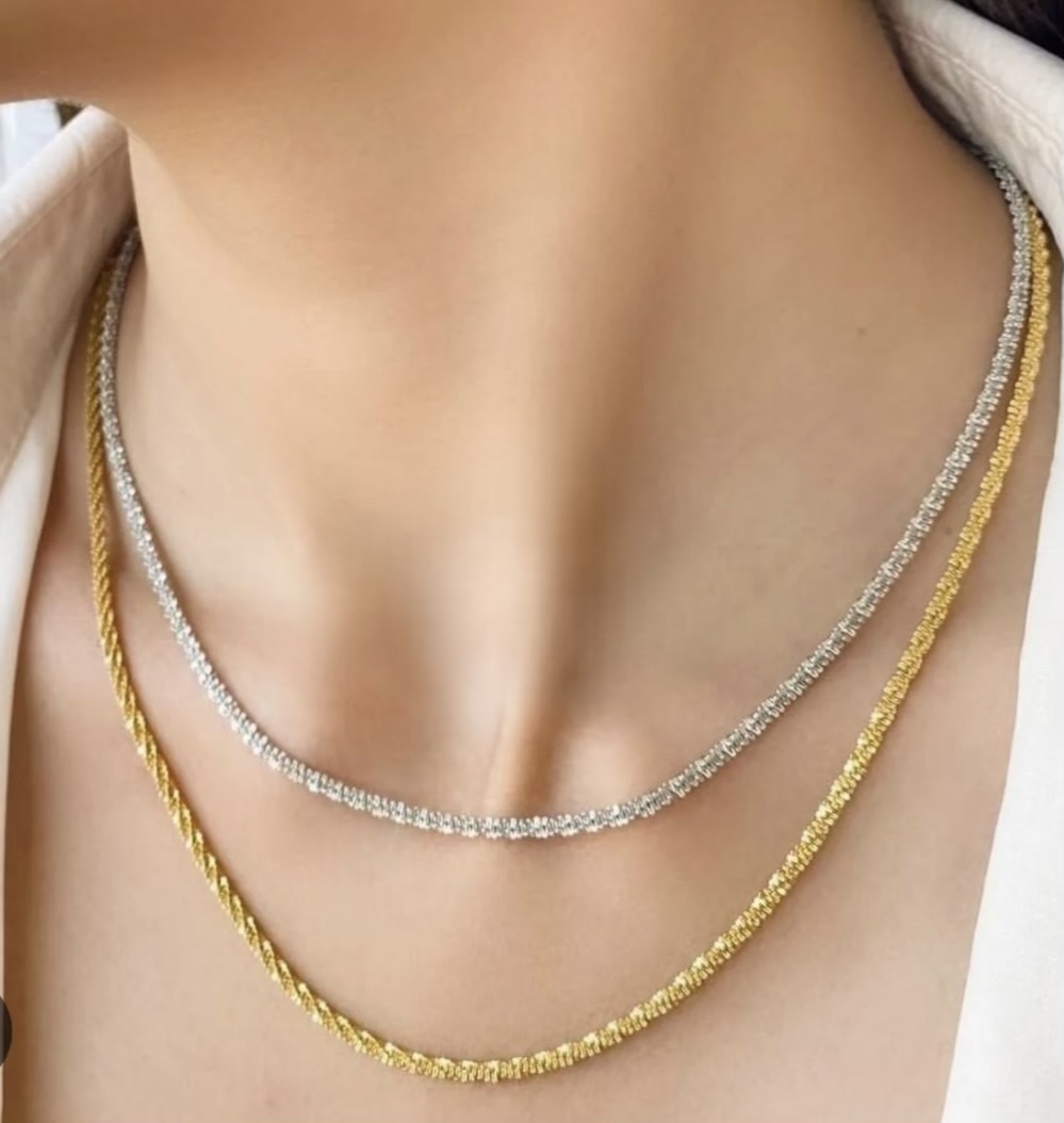 زنجیر گردنبند خاویاری استیل رنگ ثابت