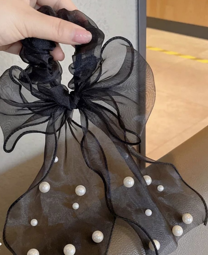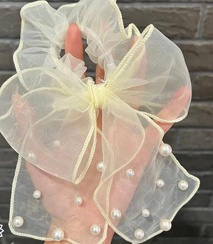 کش مو‌ حریر ساتن پاپیونی مرواریدی وارداتی
