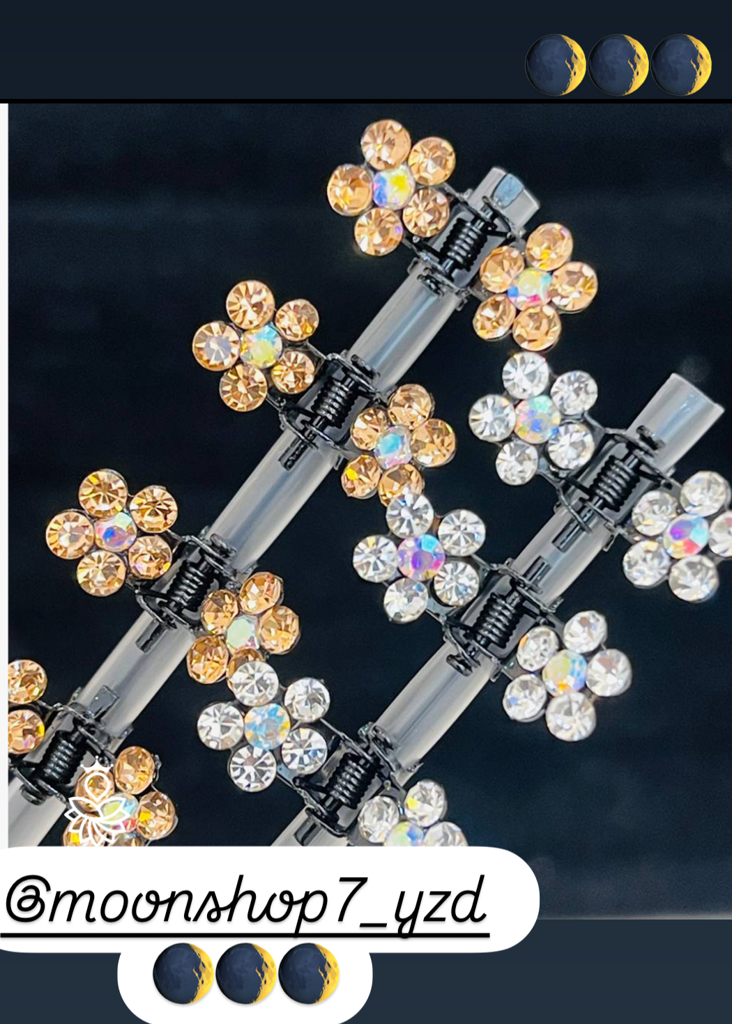 گیره خرچنگی فلزی مشکی مینی با گل رنگی