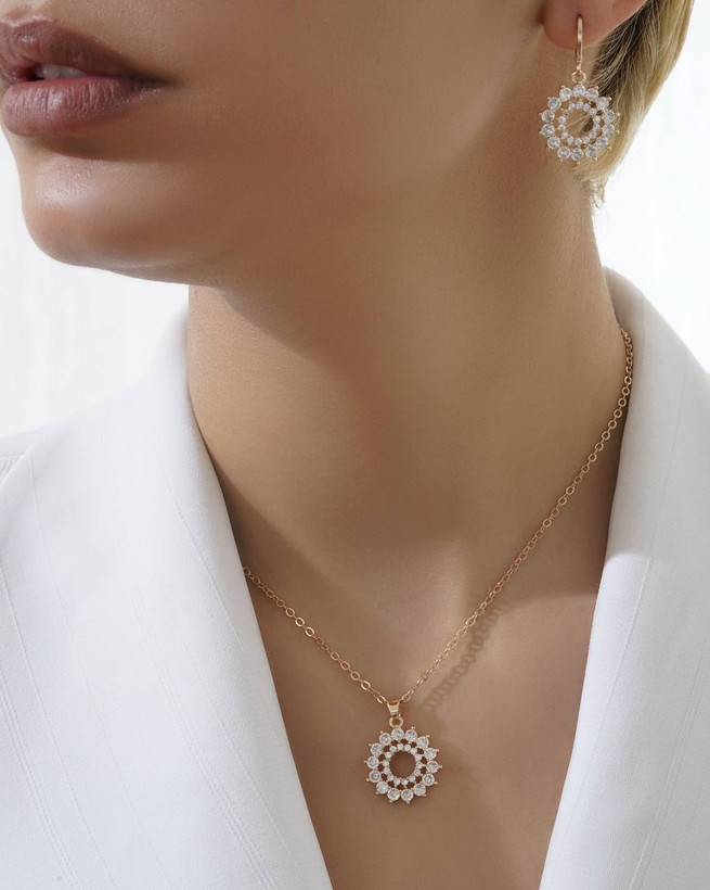 نیم ست جواهری نگین اتمی مخراج کاری شده رنگ طلایی٫سفید رادیوم همراه زنجیر ضمانت کتبی