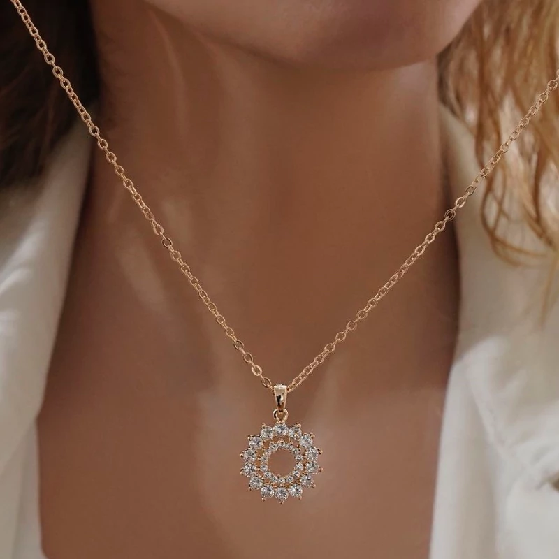 نیم ست جواهری نگین اتمی مخراج کاری شده رنگ طلایی٫سفید رادیوم همراه زنجیر ضمانت کتبی