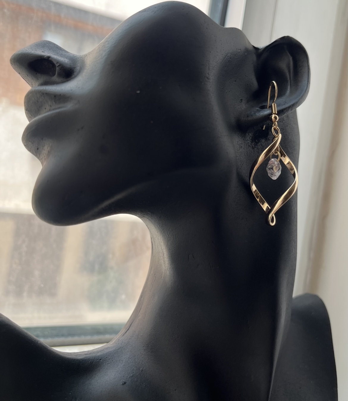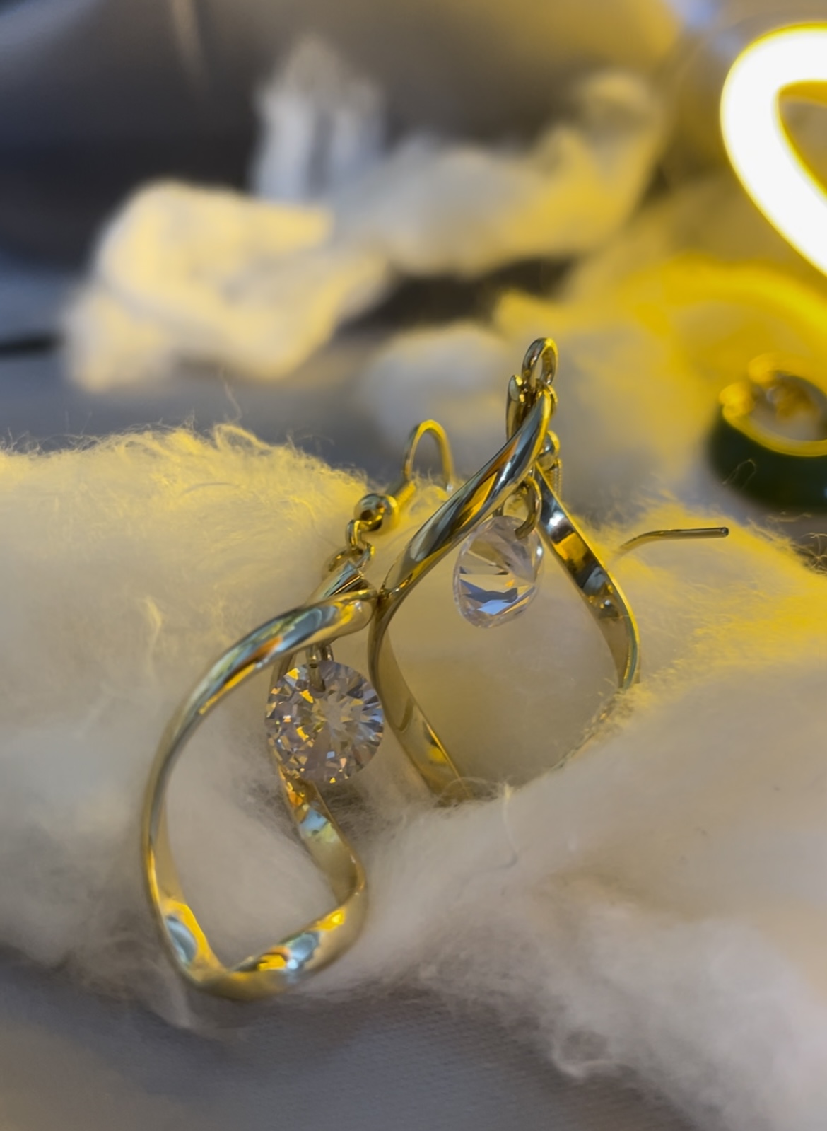 گوشواره پیچی نگین دار اویزی وارداتی طلایی